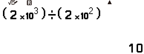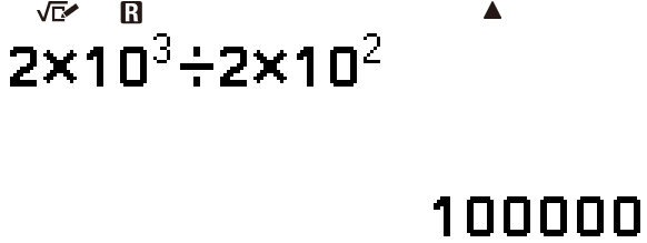 10의 제곱 키도 기본적으로 과학적 표기법을 사용하게 바뀌었습니다. 예를 들어 2E3÷2E2를 계산하기 위하여 fx-570CW에서 ×10■ 를 사용하면 아래와 같이 100000이 나옵니다.