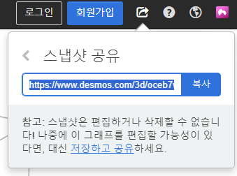 페이지 맨 위의 회원가입 버튼 오른쪽에 있는 공유 버튼을 누르고 스냅샷 공유를 클릭하면 그래프를 공유할 수 있습니다.