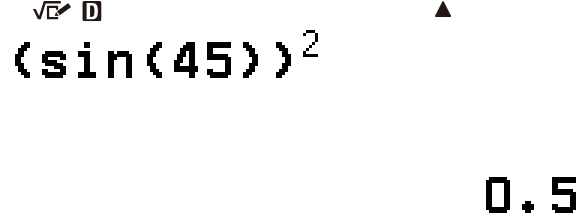 이때는 계산기에 $(\sin{(x)})^2$처럼 입력하면 해결됩니다. 예로 $\sin^2{45}$를 계산해 봅시다. 아래와 같이 입력하면 됩니다. 각도 단위를 도(Degree)로 바꾸고 입력해야 합니다.